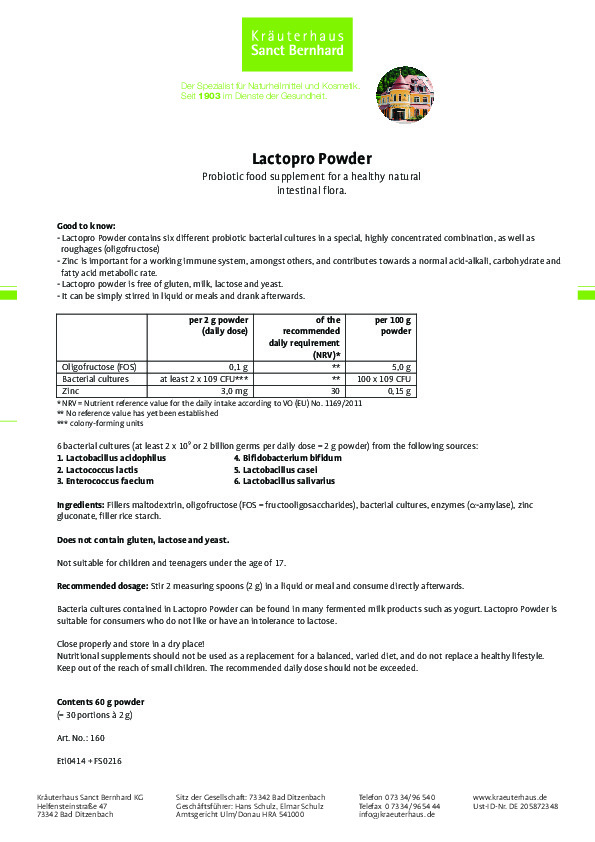 Hệ vi sinh vật ở đường ruột được biết đến như một động lực cho sự phát triển và duy trì hệ miễn dịch khỏe mạnh. Lợi khuẩn Probiotic là một loại lợi khuẩn thuộc nhóm các vi khuẩn sống, tương tự các vi sinh vật có lợi tự nhiên được tìm thấy trong ruột. Chúng còn được gọi là "vi khuẩn thân thiện" hay "vi khuẩn có lợi", những vi khuẩn này được bổ sung vào chế độ ăn nhằm cân bằng hệ vi khuẩn đường ruột để cải thiện sức khỏe. Mỗi viên nang Lactopro chứa ít nhất 1 tỷ vi khuẩn Probiotic thuộc các chủng sau: Bifidobacterium bifidum, Bifidobacterium longum, Lactobacillus casei, Lactobacillus plantarum, Lactobacillus rhamnosus. Những lợi ích chính của Probiotic như :