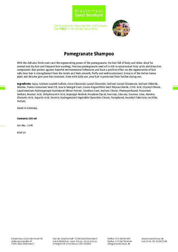 Dầu gội chiết xuất từ hạt lựu có thành phần: