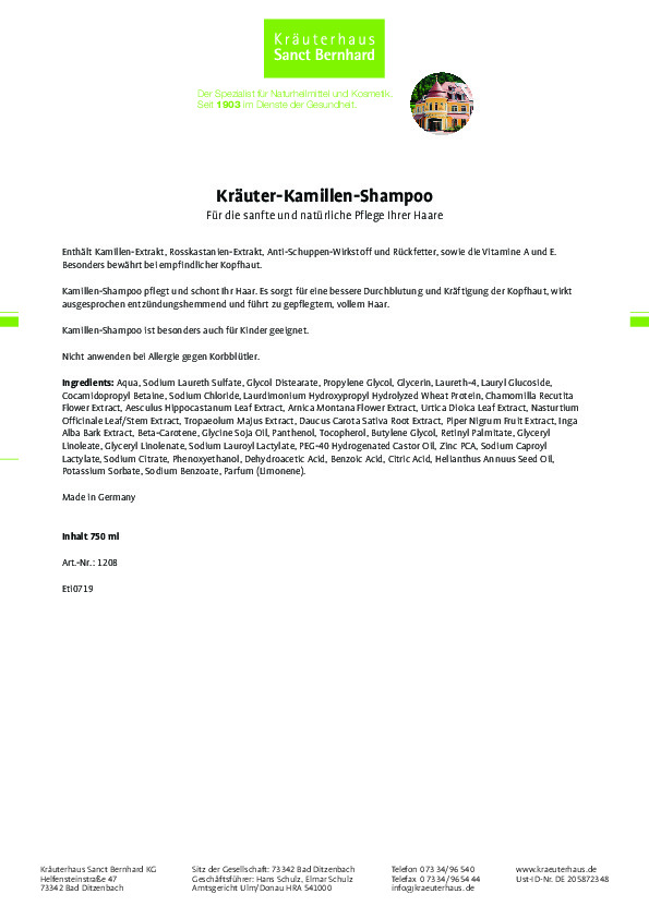 - Dầu gội thảo dược hoa cúc chứa chiết xuất hoa cúc, chiết xuất hạt dẻ ngựa, hoạt chất chống gàu và chất dưỡng ẩm, vitamin A và E giúp chăm sóc và bảo vệ da đầu, làm tóc chắc khỏe, ngăn ngừa gàu, ngăn ngừa rụng tóc. Giúp thúc đẩy lưu thông tốt hơn, chống viêm, chống ngứa.