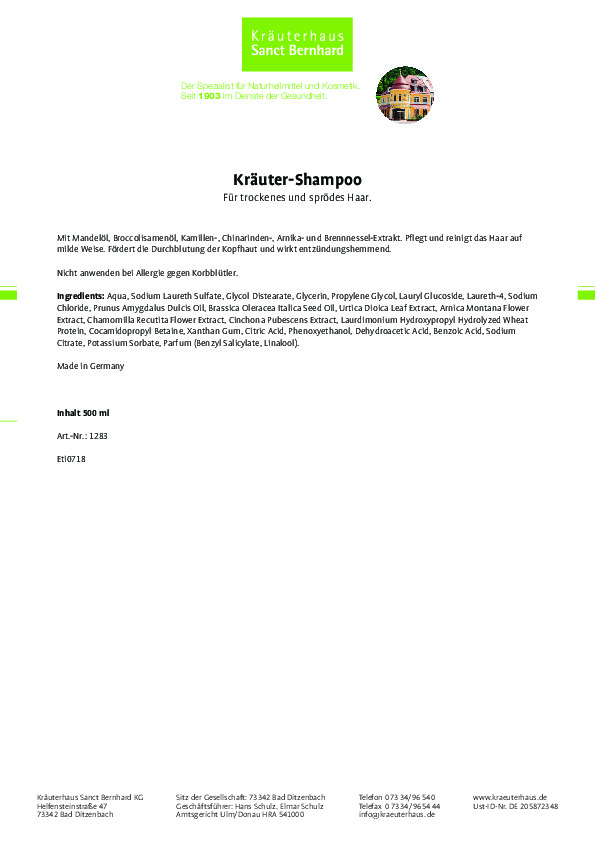 | Dạng sản phẩm: | Dầu gội thảo dược Krauter-Shampoo |