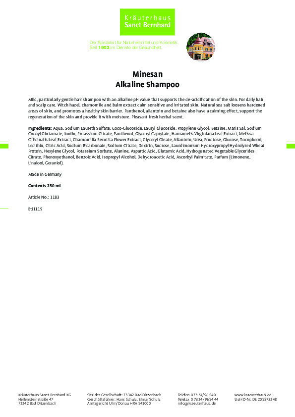 Dầu gội thảo dược Sanct Bernhard Minesan Alkaline