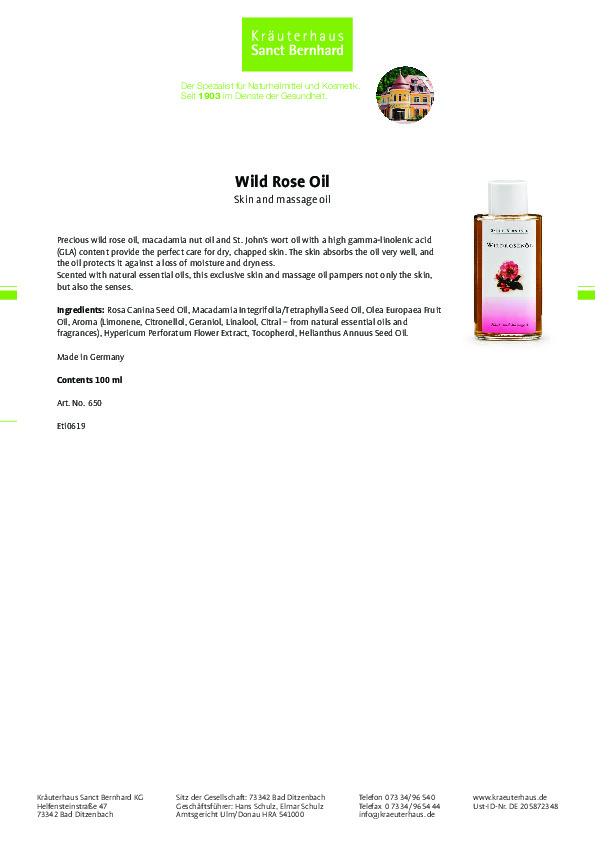 Chiết xuất cánh và rễ hoa hồng dại cung cấp độ ẩm, collagen thủy phân nuôi dưỡng sâu và cung cấp độ ẩm sâu và ngay lập tức cho da, giúp da căng bóng và mềm mại. Sản phẩm thích hợp cho mọi làn da da dầu và da hỗn hợp đặc biệt là da nhạy cảm. Sản phẩm cam kết 100% hàng chính hãng thương hiệu Sanct Bernhard của Đức.