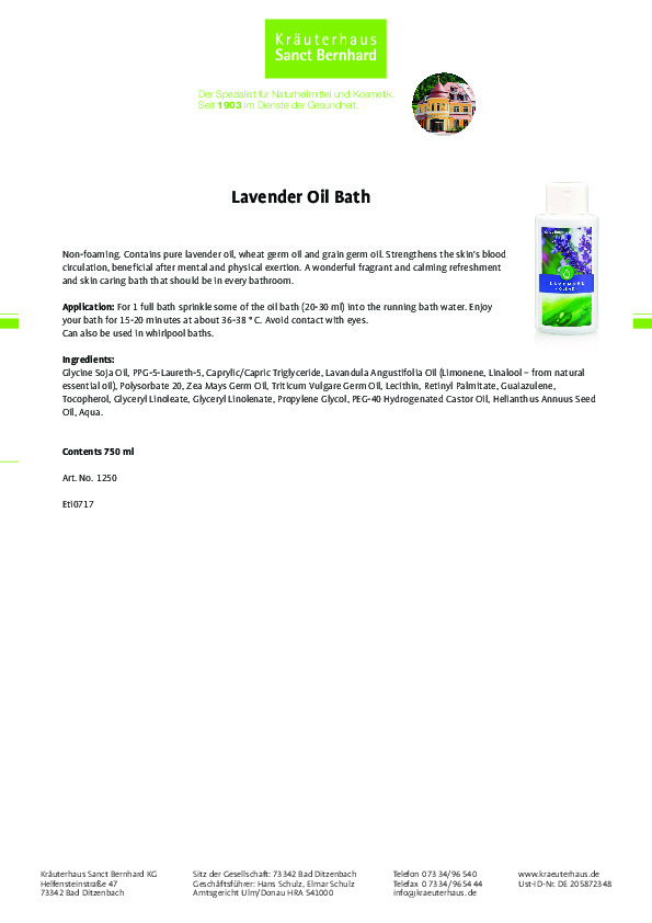 Dầu tắm Lavender thành phần gồm: