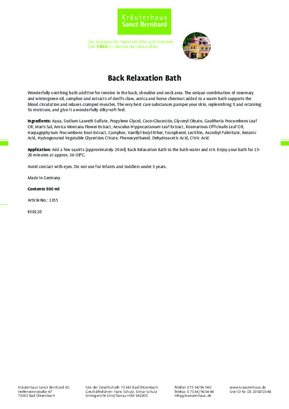 Dầu tắm thảo dược Sanct Bernhard Back Relaxation Bath