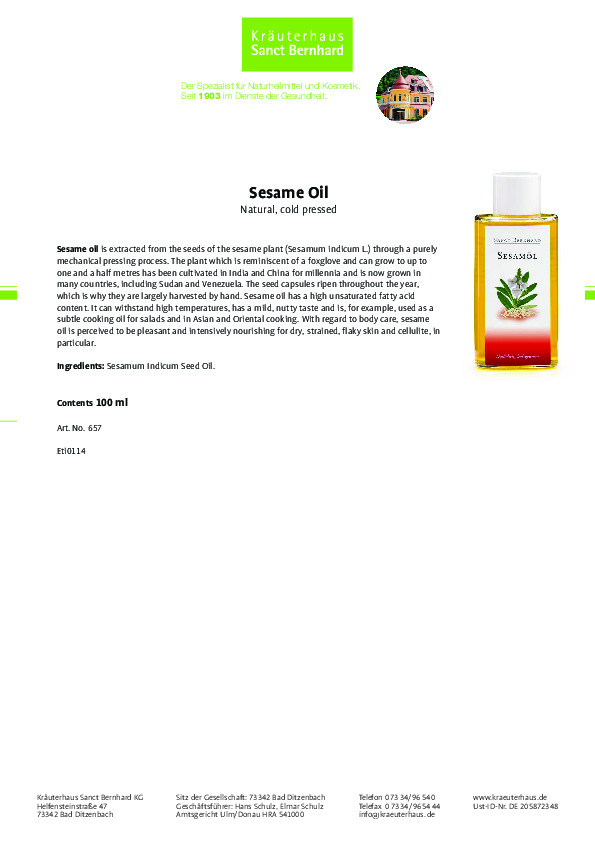 Dầu hạt mè được chiết từ hạt của cây vừng có tên khoa học Sesamum Indicum thu được qua quá trình ép cơ học hoàn toàn, được ép lạnh giúp bảo toàn các hoạt chất acid béo thiết yếu.