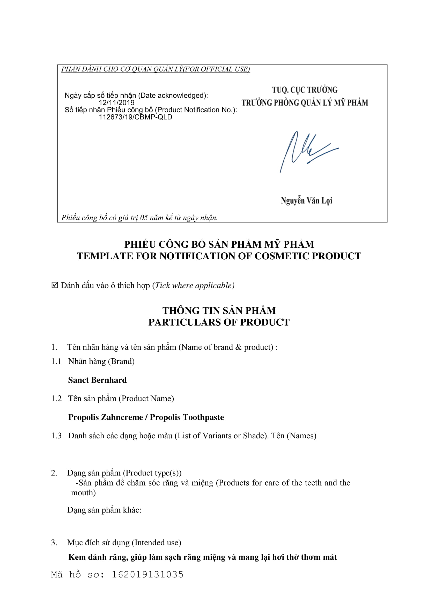 | Dạng sản phẩm: | Kem đánh răng Propolis toothpaste |