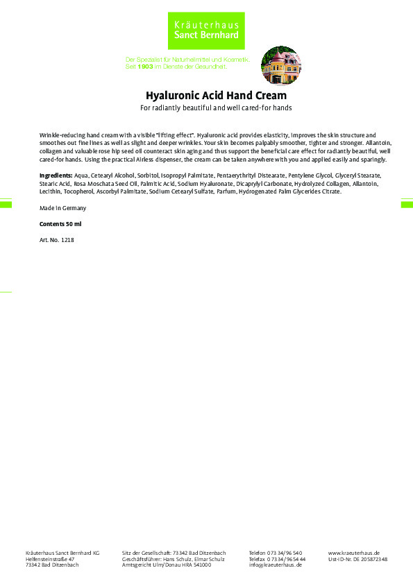 Kem dưỡng tay Hyaluronic Cho đôi tay đẹp rạng ngời và cấp đủ độ ẩm, da mềm mịn, đầy sức sống.
