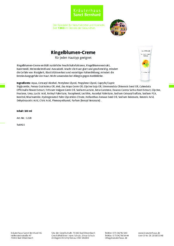 Kem dưỡng da Marigold Cream 100 ml với chiết xuất hoa cúc vạn thọ, dầu mầm lúa mì, các loại dầu tự nhiên và các vitamin giúp:
