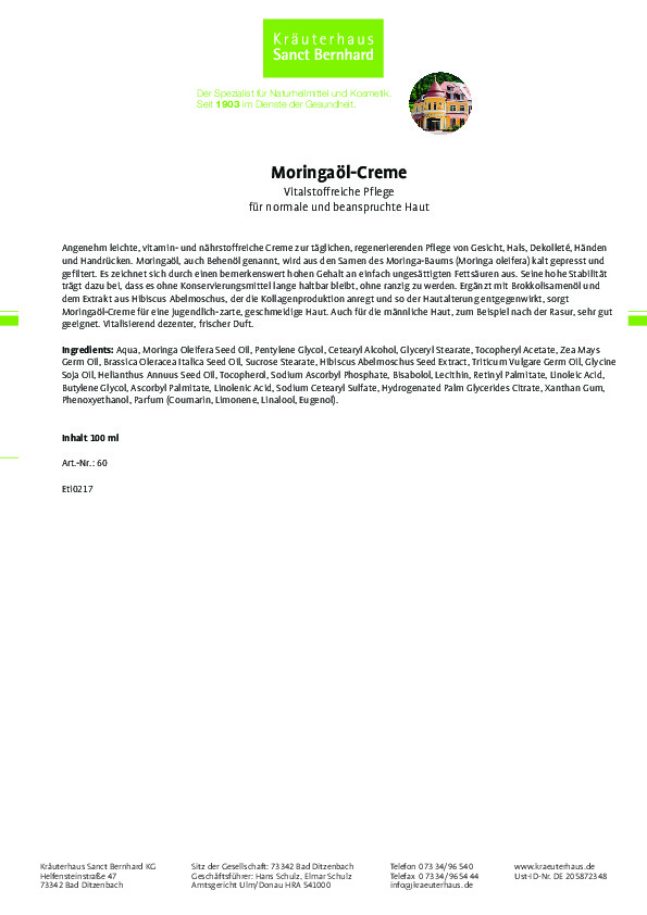 - Kem dưỡng da hàng ngày, chăm sóc và tái tạo da mặt, cổ, tay. Dành cho da thường. Dầu Moringa có độ ổn định cao nên ko cần thêm chất bảo quản, cung cấp dinh dưỡng cho làn da.