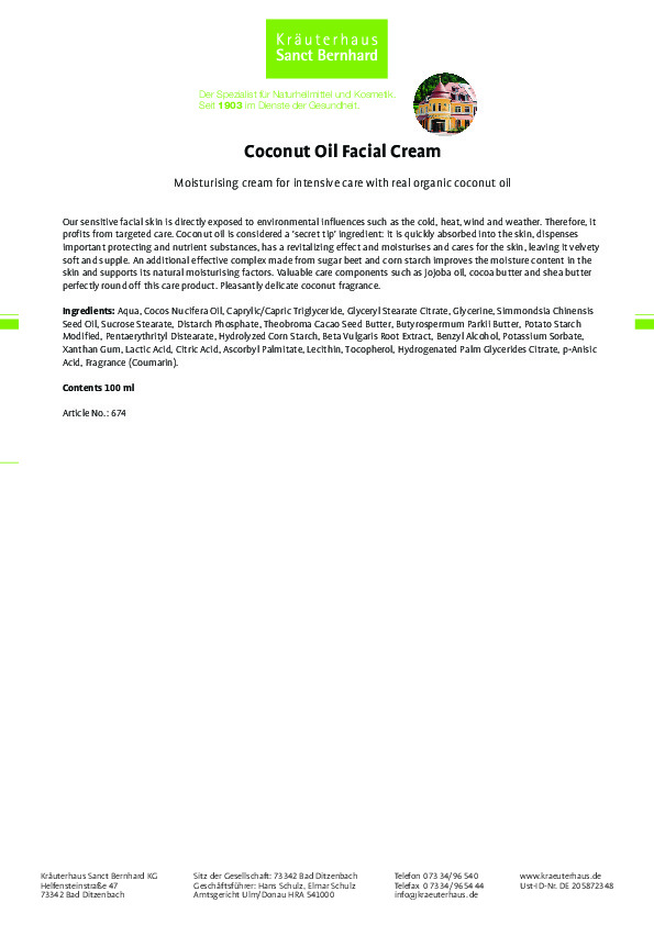 Kem dưỡng da dầu dừa Sanct bernhard Coconut Oil Facial Cream