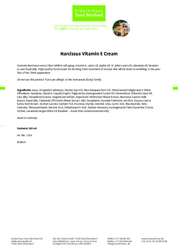 Kem dưỡng da mặt cao cấp hoa thủy tiên - Vitamin E giúp ngăn ngừa nếp nhăn, ngừa lão hóa sớm, cấp ẩm dưỡng ẩm cho da, tái tạo làn da, da mềm mịn và săn chắc.