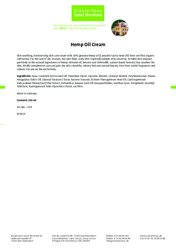 Kem dưỡng da Sanct Bernhard Hemp Oil