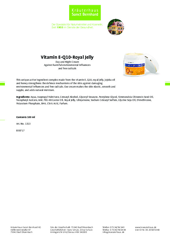 Kem dưỡng da Q10 là sự kết hợp các hoạt chất độc đáo bao gồm vitamin E, coenzyme tự nhiên Q10 chống oxy hóa, ngăn ngừa lão hóa, cùng với sữa ong chúa, dầu jojoba và mật ong giúp tăng cường cơ chế bảo vệ của da chống lại các gốc tự do gây hại, dưỡng ẩm tự nhiên, giúp cho da đàn hồi, mịn màng. Sữa ong chúa chứa các vitamin, phospholipids, protein, enzyme…giúp hỗ trợ quá trình trao đổi chất cho da, da sáng mịn và đầy sức sống.