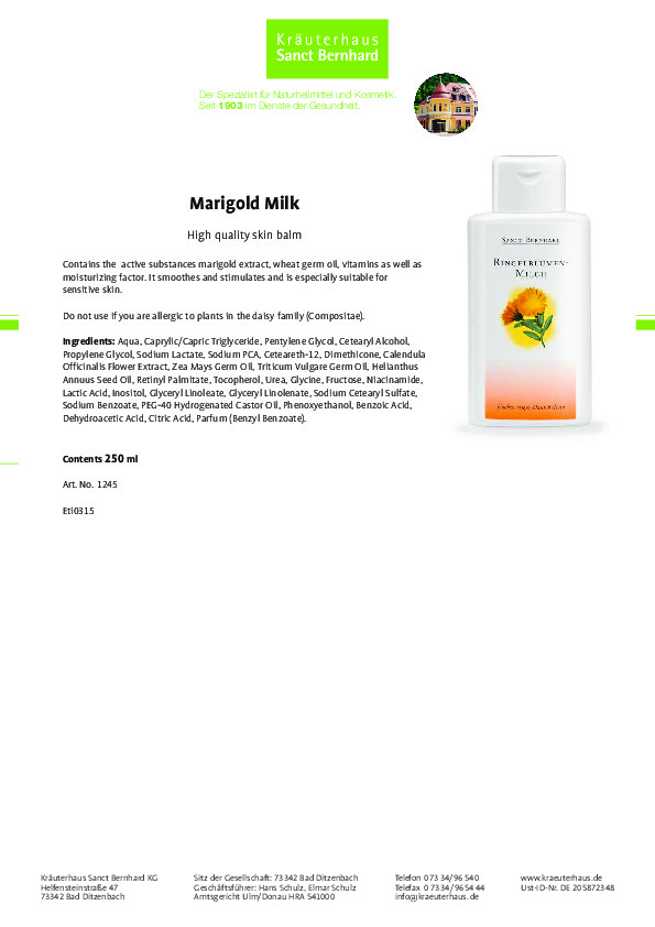 Kem dưỡng da Marigold Milk với chiết xuất cúc vạn thọ, dầu mầm lúa mì, dầu ngô, dầu hạt hướng dương, vitamin E, vitamin A và các thành phần dưỡng ẩm khác giúp: