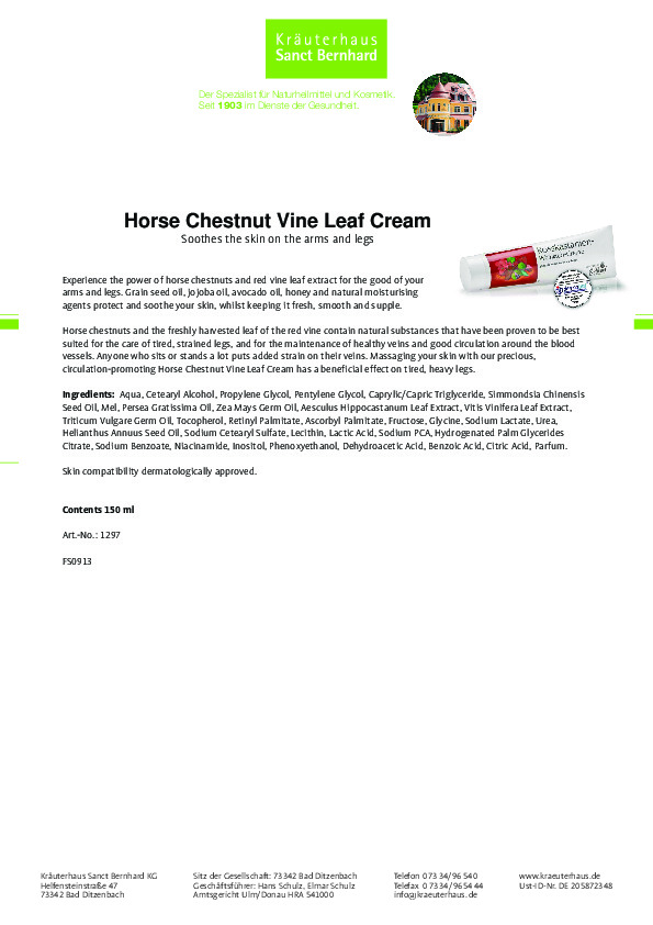 Suy giãn tĩnh mạch là một loại bệnh điển hình của thời đại hiện nay, đây còn là căn bệnh đặc trưng của nữ giới vì tính chất phải đứng hoặc ngồi lâu, mang giày cao gót nhiều hay là mang thai… tuy không nguy hiểm ngay đến tính mạng, nhưng nó ảnh hưởng rất nhiều đến cuộc sống, không ai muốn có một đôi chân xấu xí và bị những cơn tê nhức hành hạ mỗi ngày. Vậy nên, làm sao để cải thiện được tình trạng suy giãn tĩnh mạch được rất nhiều người quan tâm. Chính vì vậy thương hiệu Sanct Bernhard đã nghiên cứu thành công và cho ra đời sản phẩm Kem ngừa giãn tĩnh mạch từ hạt dẻ ngựa Vine Leaf Cream giúp cải thiện đáng kể các triệu chứng của suy giãn tĩnh mạch như sưng, đau, tê, nhức chân, phù chân chỉ sau một thời gian ngắn sử dụng. Sản phẩm đã được kiểm nghiệm cam kết 100% hàng chính hãng thương hiệu Sanct Bernhard.