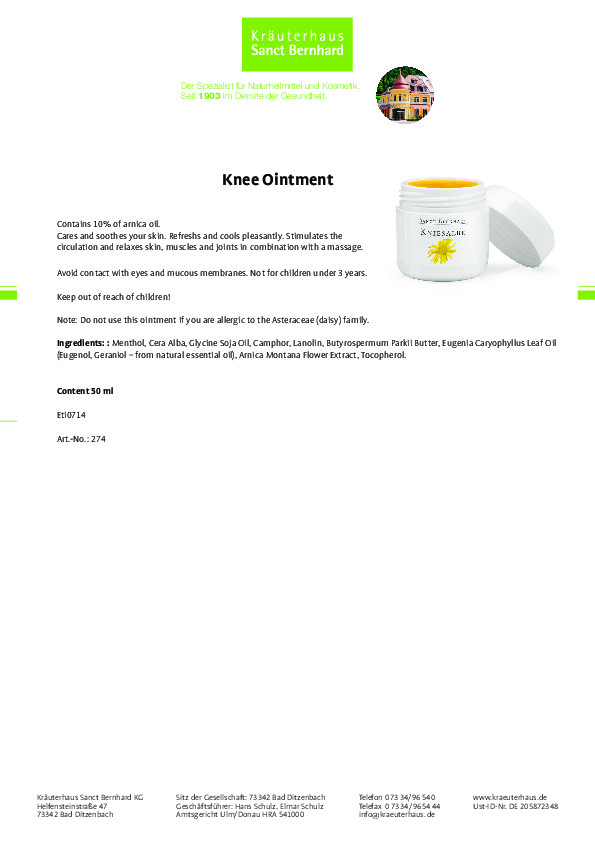 Kem xoa bóp đầu gối Knee Ointment gồm thành phần: