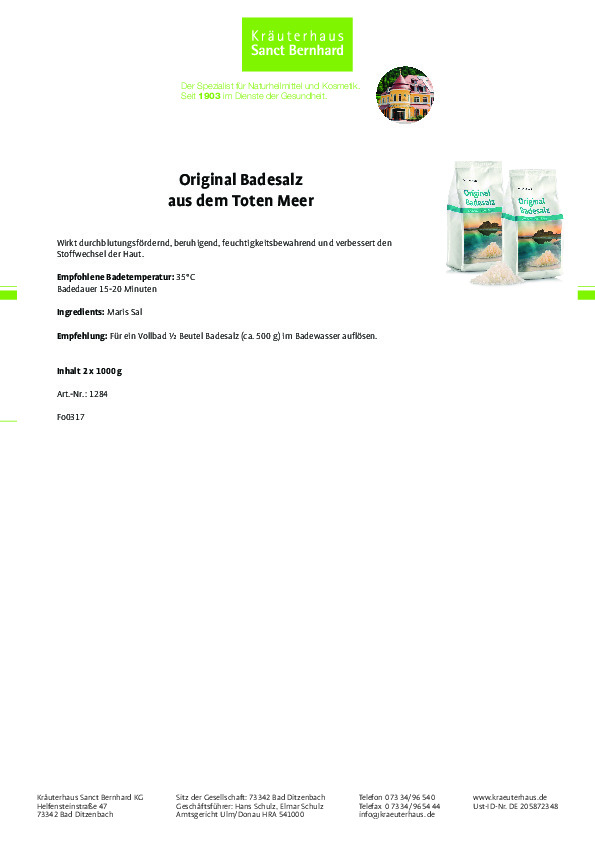 Thành phần của muối biển chết Original Badesalz