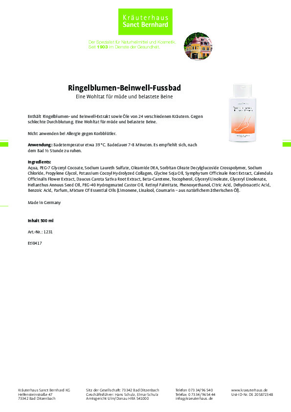 - Sanct Bernhard là một trong những hãng sản xuất dược mỹ phẩm hàng đầu tại Đức và Châu Âu. Thành lập từ năm 1903 với hơn 117 năm đồng hành phát triển cùng sức khỏe con người. Là một trong những thương hiệu lâu đời và có chất lượng sản phẩm tốt bậc nhất Châu Âu. Được phân phối tại hơn 100 Quốc gia trên thế giới trong đó có hơn 30 nước Châu Âu. Thanh Trang Pharma tự hào là đơn vị phân phối các sản phẩm dược mỹ phẩm từ hãng dược phẩm Sanct Bernhard của CHLB Đức tại Việt Nam.