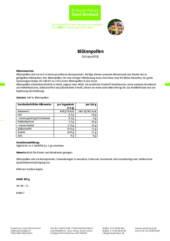 - Sanct Bernhard là một trong những hãng sản xuất dược mỹ phẩm hàng đầu tại Đức và Châu Âu. Thành lập từ năm 1903 với hơn 117 năm đồng hành phát triển cùng sức khỏe con người. Là một trong những thương hiệu lâu đời và có chất lượng sản phẩm tốt bậc nhất Châu Âu. Được phân phối tại hơn 100 Quốc gia trên thế giới trong đó có hơn 30 nước Châu Âu. Thanh Trang Pharma tự hào là đơn vị phân phối các sản phẩm dược mỹ phẩm từ hãng dược phẩm Sanct Bernhard của CHLB Đức tại Việt Nam.
