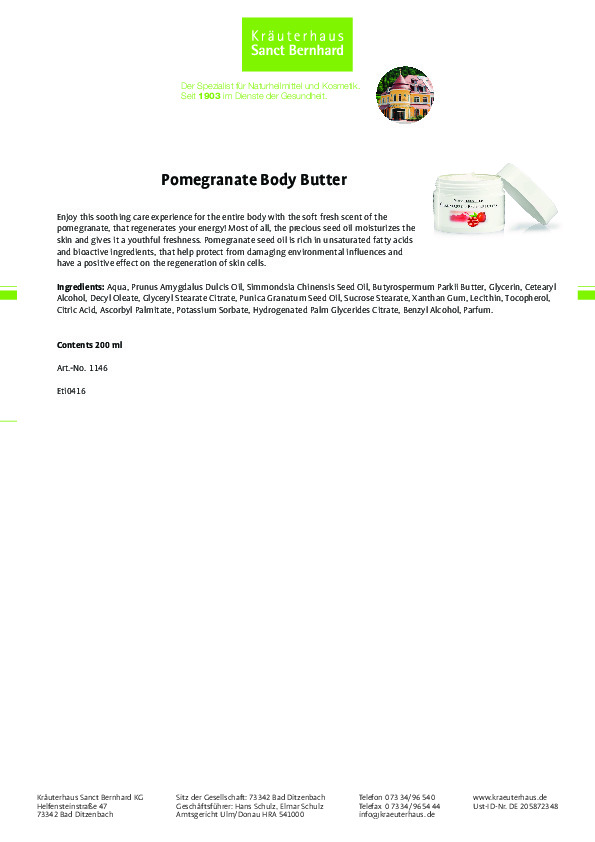 Sữa dưỡng thể toàn thân tinh chất Lựu gồm các thành phần: