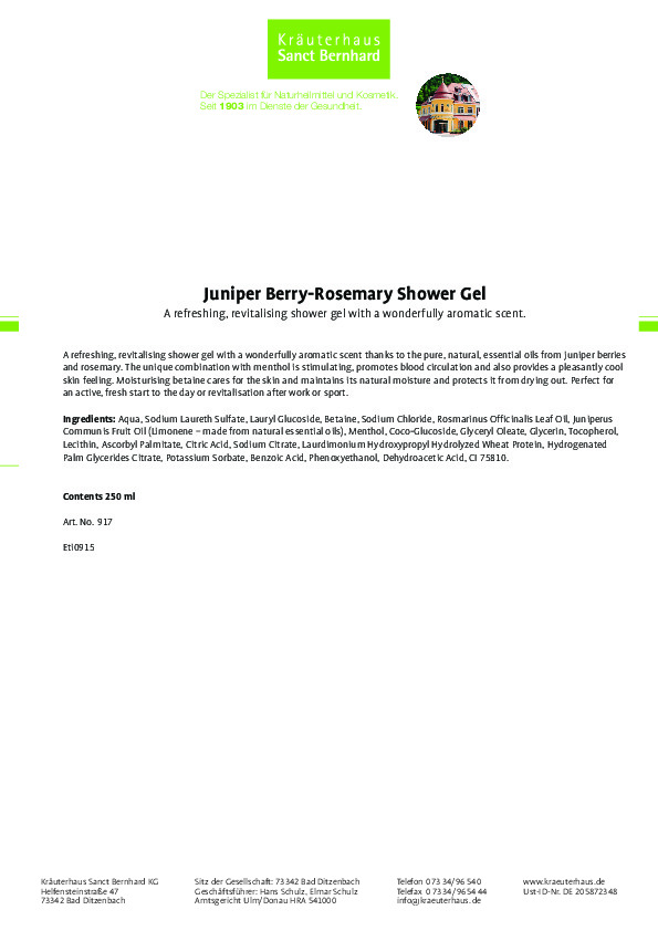 Sản phẩm Sữa tắm dưỡng da chiết xuất quả bách xù Juniper Berry Rosemary với mùi hương nồng ấm của quả Bách xù khiến bạn không thể thờ ơ; giúp làn da của bạn luôn tràn đầy năng lượng và sức mạnh đồng thời làm mềm da, cung cấp đầy đủ các dưỡng chất và phù hợp với mọi làn da ngay cả làn da nhạy cảm nhất. Đặc biệt kết hợp cùng các loại tinh chất dưỡng da mang lại sự mềm mại, mịn màng, độ ẩm và sự sạch sẽ nhẹ nhàng cho làn da của bạn.