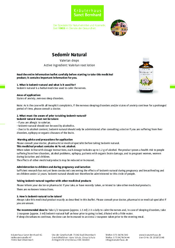 Bạn có biết điều sẽ gì xảy ra nếu bạn bị mất ngủ thường xuyên? Mất ngủ lâu ngày có thể gây ra nhiều hậu quả như suy giảm trí nhớ, trầm cảm, tăng nguy cơ huyết áp cao, suy giảm miễn dịch, lờ đờ, mệt mỏi, da sạm, khô, quầng mắt thâm...Có thể thấy giấc ngủ có vai trò rất quan trọng trong việc duy trì sức khỏe cả về mặt thể chất lẫn tinh thần cho con người. Chính vì vậy đã có rất nhiều các nghiên cứu về cải thiện chất lượng giấc ngủ trong đó Sanct Bernhard là một trong những thương hiệu nổi tiếng và đi đầu trong lĩnh vực này. Sau nhiều năm nghiên và bào chế thành công sản phẩm Tăng cường thần kinh từ rễ cây nữ lang dạng giọt Sedomir Natural với hi vọng cải thiện được tất cả những vấn đề mà người dùng gặp phải trong mọi giấc ngủ. Sản phẩm đã qua kiểm nghiệm, cam kết 100% hàng chính hãng.