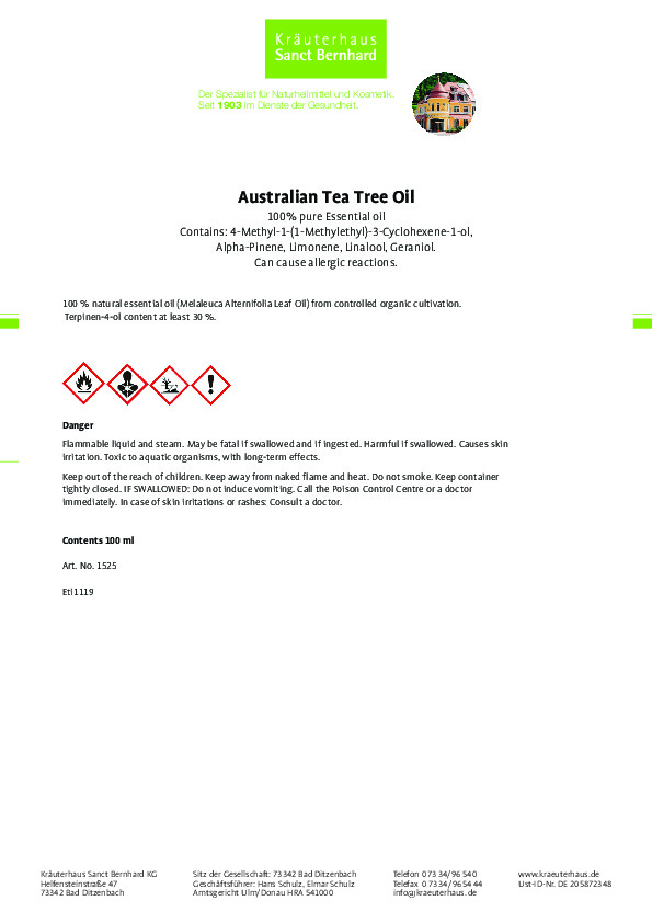 Tinh dầu tràm trà Essential Oil 100% chiết xuất tự nhiên tinh khiết phù hợp sử dụng dưới dạng xông trong phòng làm việc, phòng khách, phòng ngủ, trong ôtô… Tạo hương thơm dễ chịu lại vừa sát khuẩn, ức chế virus, đặc biệt đang trong mùa cao điểm sốt, cảm cúm. Sản phẩm đã qua kiểm nghiệm, cam kết 100% hàng chính hãng thương hiệu Sanct Bernhard của Đức