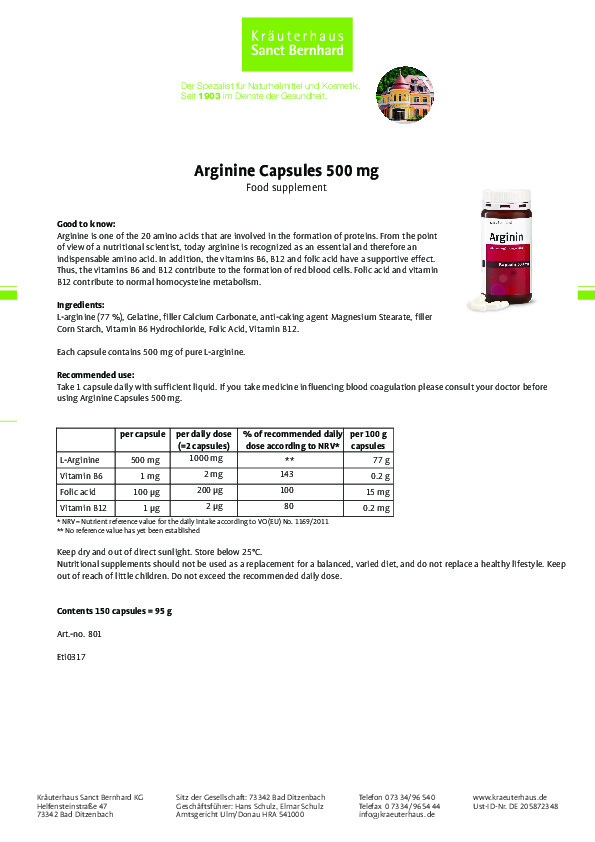 - L-Arginine 500mg