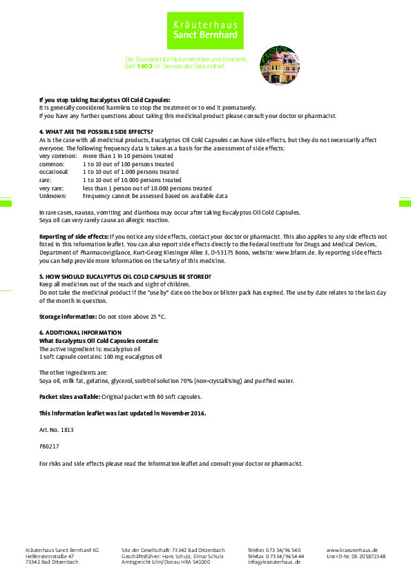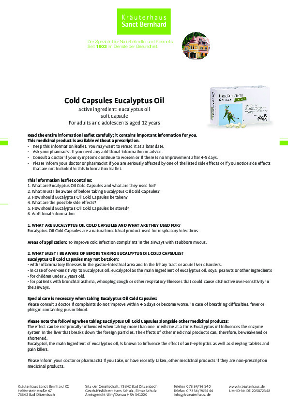 - Làm lỏng đờm trong cổ họng, làm sạch và làm dịu đường hô hấp trên và làm giảm cảm giác khó chịu đau đầu khi cảm lạnh. Giảm cảm lạnh và hỗ trợ quá trình hồi phục tổn thương đường hô hấp. Viên nang lạnh Dầu khuynh diệp chứa 100 mg dầu khuynh diệp tự nhiên. Đi thẳng vào máu tới đường hô hấp trên và phát huy tác dụng của nó.