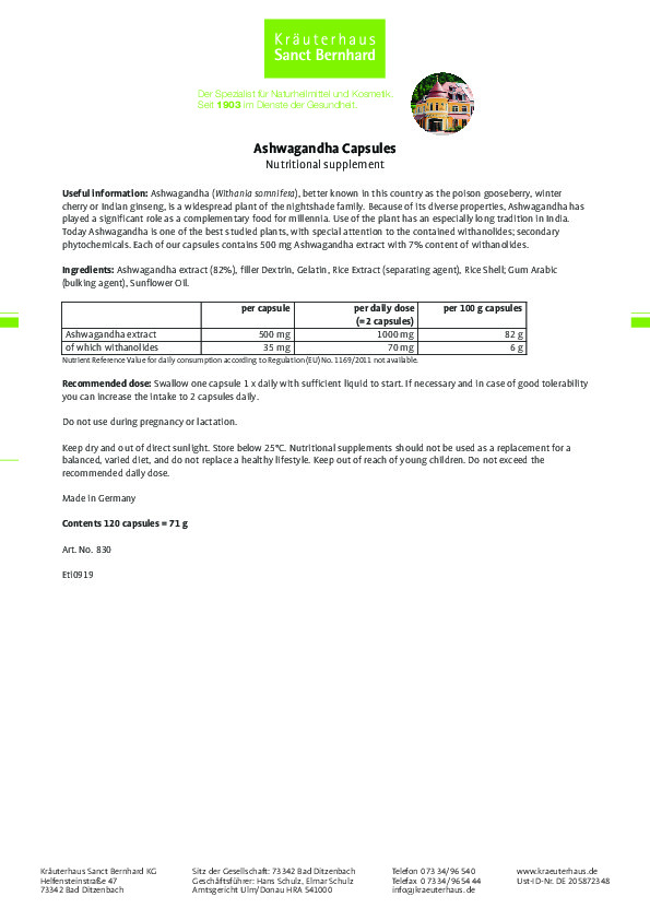 - Chiết xuất Ashwagandha 500mg