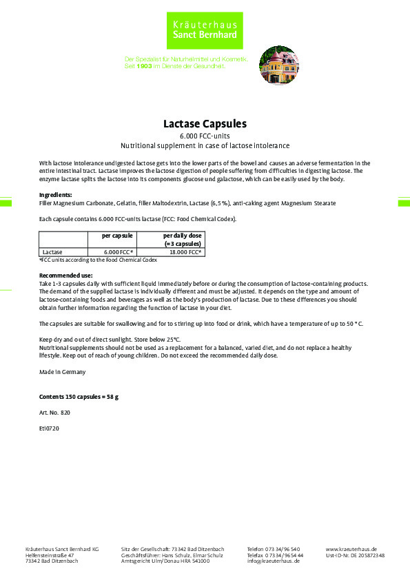 Lactose là chất được sản sinh ra trong ruột non chất này sẽ đóng vai trò phân chia đường thành 2 loại là glucose và đường galactose để hấp thụ vào cơ thể tốt hơn. Lợi ích của lactose đối với người lớn là đóng vai trò cung cấp năng lượng cho não bộ và các cơ quan khác trong cơ thể, giúp đường ruột sản sinh nhiều vi khuẩn có lợi cho sự phát triển và hoạt động của đường tiêu hóa. Đối với trẻ em thì luôn cần cung cấp đủ lactose vào cơ thể để phục vụ cho nhu cầu phát triển của xương, khớp, năng lượng, hệ tiêu hóa và các tế bào thần kinh...Nhìn thấy được tầm quan trọng của việc bổ sung Lactose cho cơ thể thương hiệu Sanct Bernhard đã nghiên cứu thành công và cho ra đời sản phẩm Viên nang hỗ trợ tiêu hóa Lactase Capsules 6,000 FCC units phù hợp mọi lứa tuổi giúp cải thiện được tất cả những vấn đề về đường tiêu hóa, sản phẩm đã qua kiểm nghiệm, cam kết 100% hàn chính hãng.