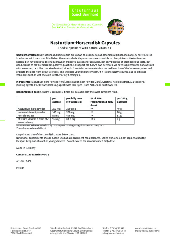 Gồm bột thảo mộc cải xoong và bột cải ngựa đồng thời bổ sung thêm chiết xuất Acerola góp phần duy trì chức năng bình thường của hệ thống miễn dịch và bảo vệ các tế bào chống oxy hóa