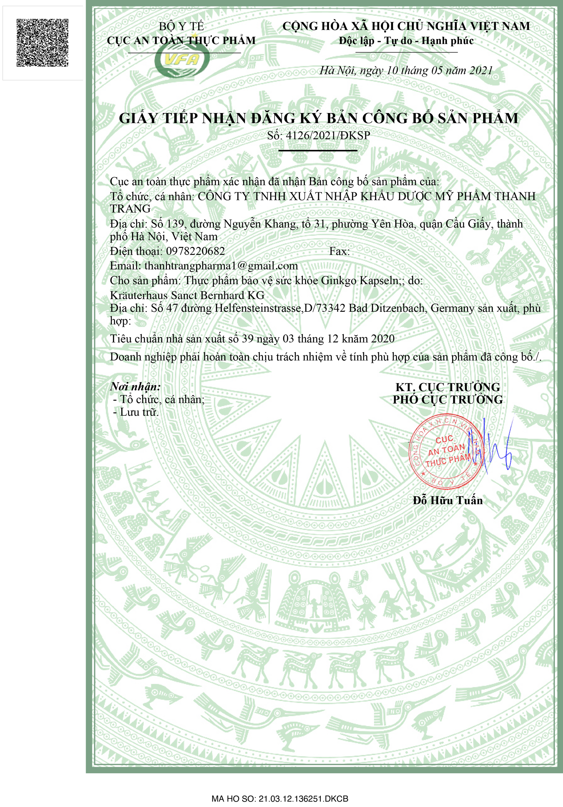 Thanh Trang tự hào là đơn vị nhập khẩu và phân phối độc quyền các sản phẩm dược mỹ phẩm từ hãng dược phẩm Sanct Bernhard của CHLB Đức tại Việt Nam.