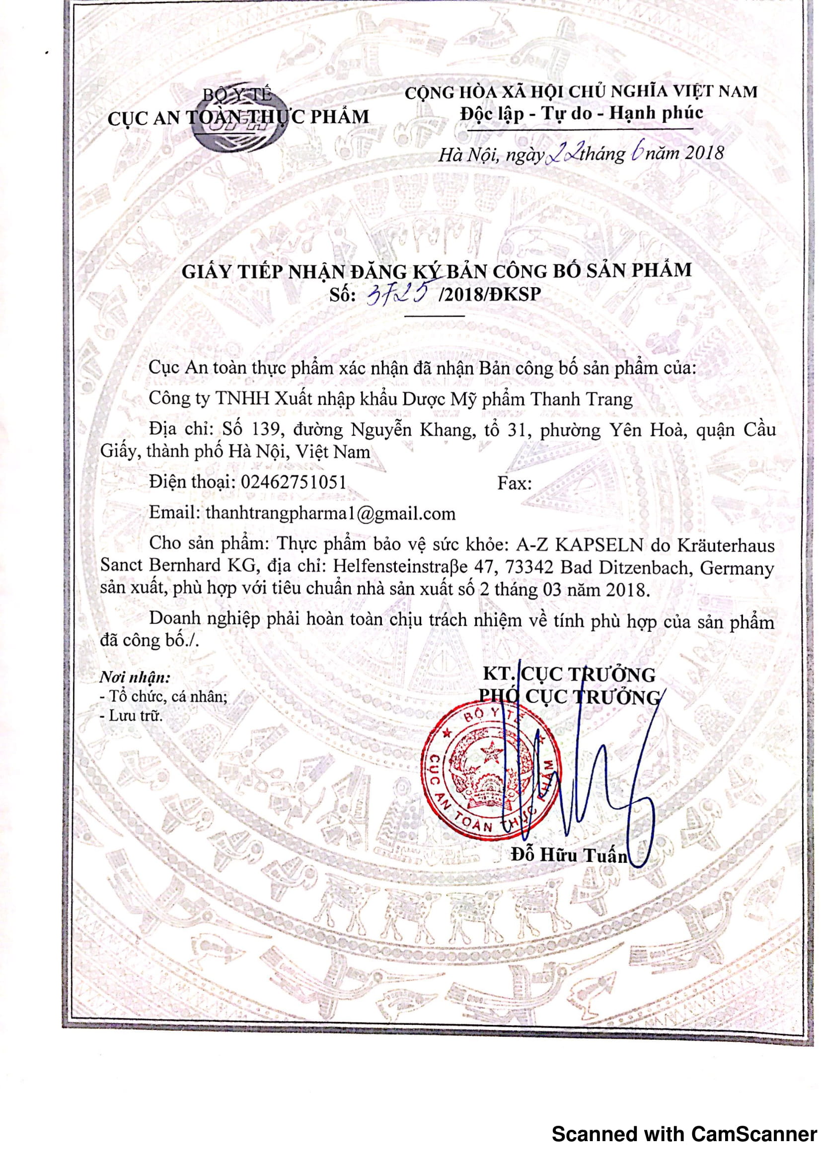 Thanh Trang tự hào là đơn vị nhập khẩu và phân phối độc quyền các sản phẩm dược mỹ phẩm từ hãng dược phẩm Sanct Bernhard của CHLB Đức tại Việt Nam.