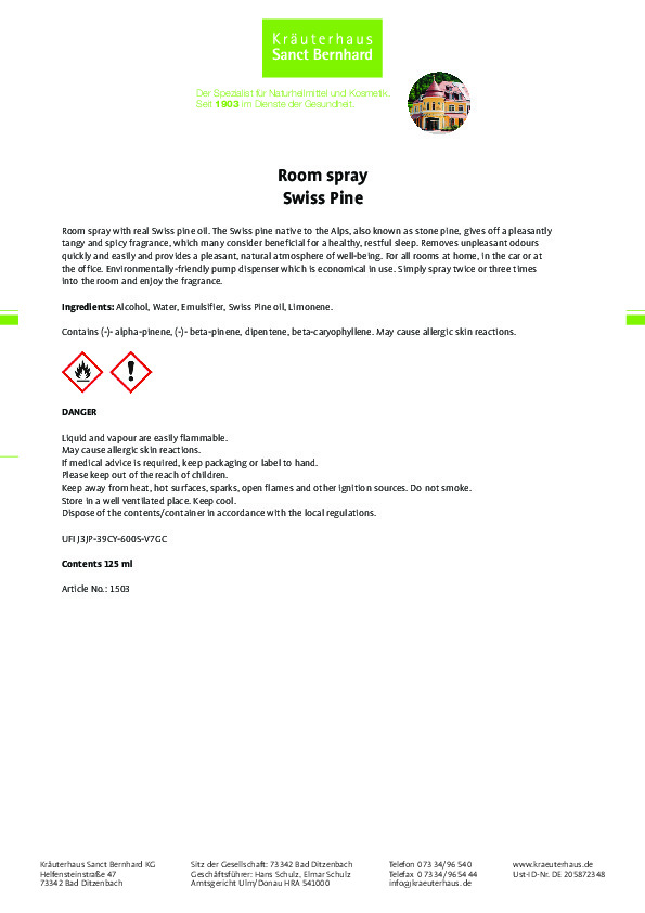 Bạn luôn cảm thấy lo lắng vì những sát thủ vô hình? Các loại vi khuẩn gây bệnh, luôn rình rập và có thể tấn công bất cứ khi nào. Vì vậy lựa chọn sử dụng Xịt phòng khử mùi dầu thông Thụy Sĩ Swiss Pine sẽ là một “người hộ vệ” đáng tin cậy. Không chỉ là khử mùi, sản phẩm còn có tác dụng tiêu diệt những loại vi khuẩn gây bệnh. Nó mang đến sự đảm bảo cho sức khoẻ của bạn và gia đình. Sản phẩm đã qua kiểm nghiệm, cam kết 100% hàng chính hãng thương hiệu Sanct Bernhard của Đức.